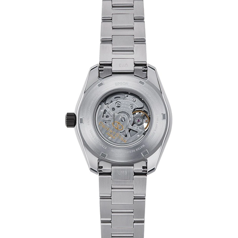 This Orient watch has a case made of stainless steel with a diameter of 41 mm and is fitted with a metal band. Inside the case lies a Seiko Instruments Inc. movement and the watch features a Sapphire crystal.