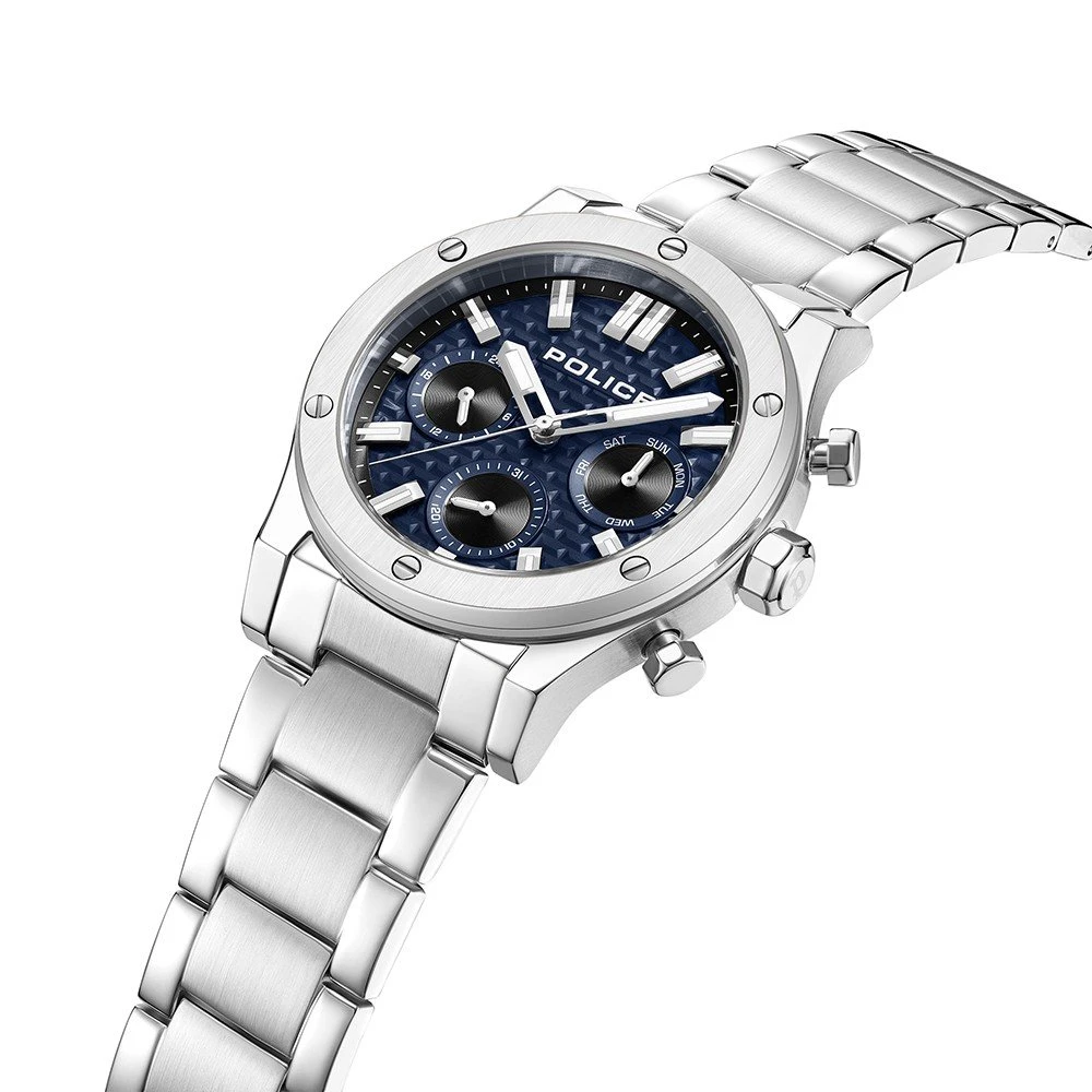 This Police watch has a case made of stainless steel with a diameter of 42 mm and is fitted with a metal band. Inside the case lies a Seiko Instruments Inc. movement and the watch features a Mineral crystal.