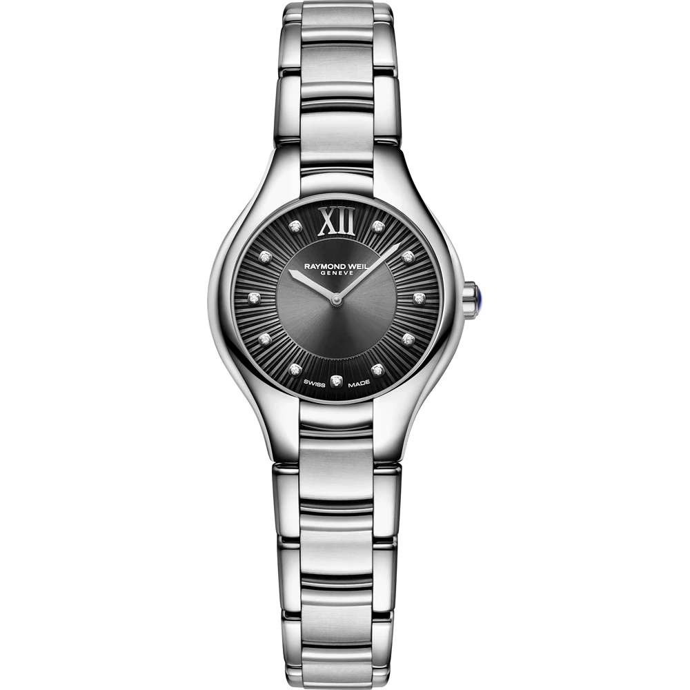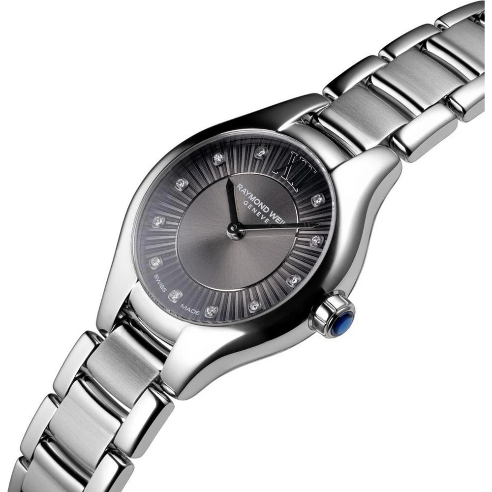 This Raymond Weil watch has a case made of stainless steel with a diameter of 24 mm and is fitted with a metal band. Inside the case lies a Ronda movement and the watch features a Sapphire crystal.