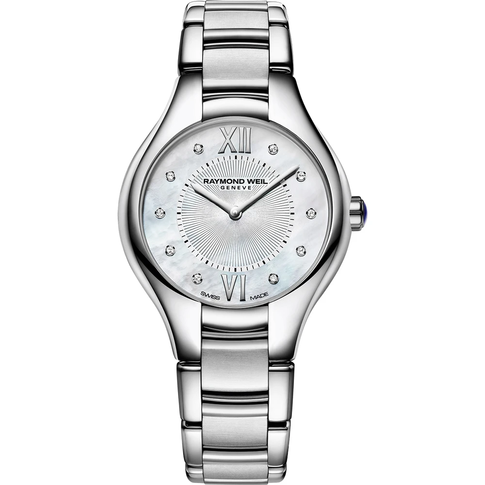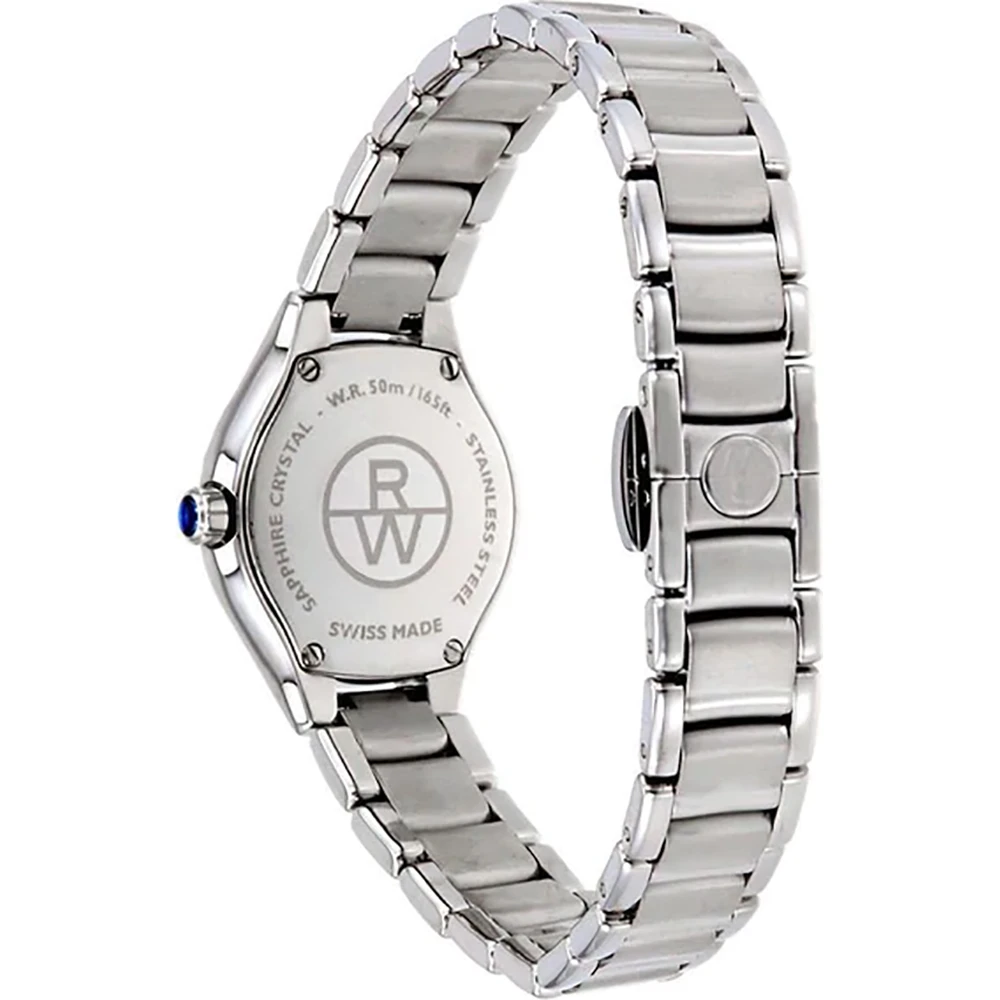 This Raymond Weil watch has a case made of stainless steel with a diameter of 27 mm and is fitted with a metal band. Inside the case lies a ETA movement and the watch features a Sapphire crystal.