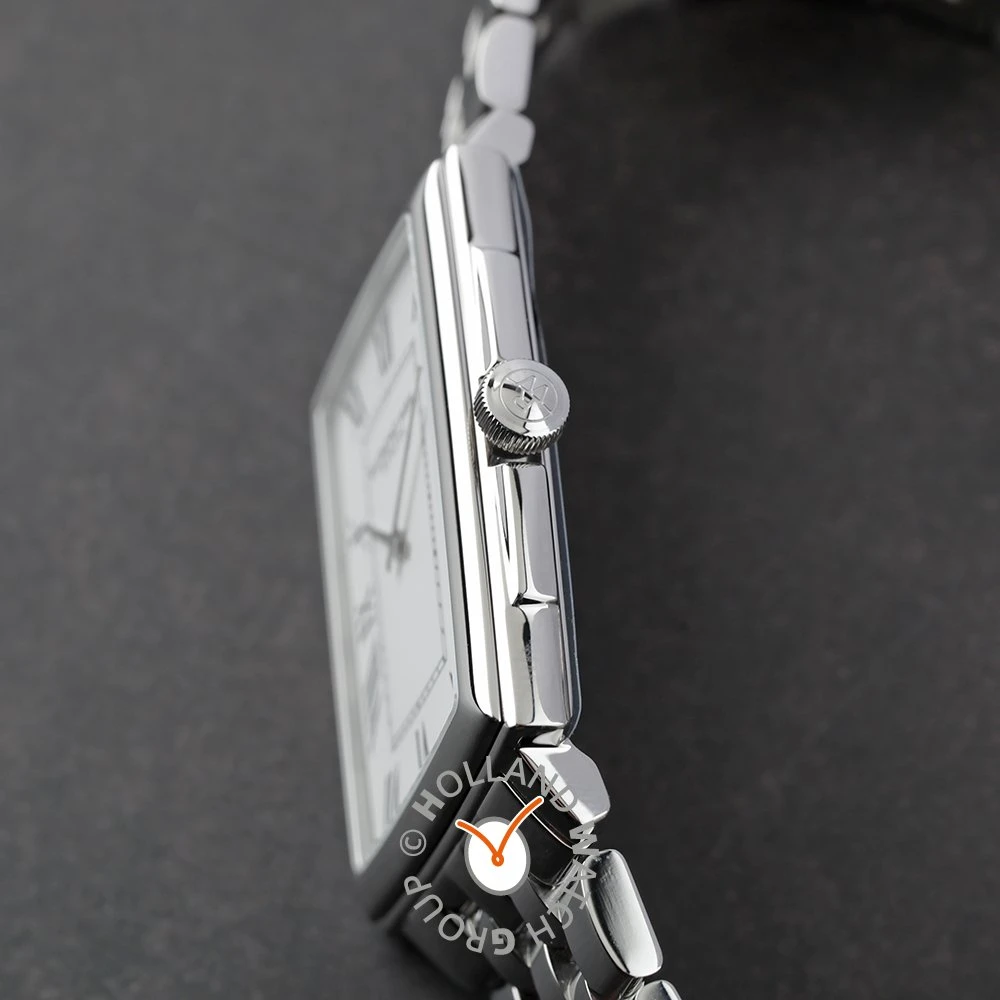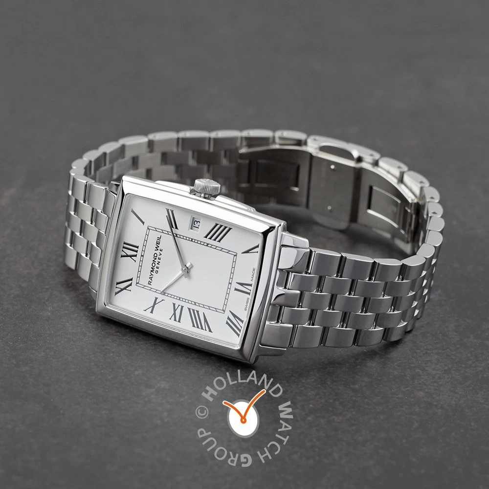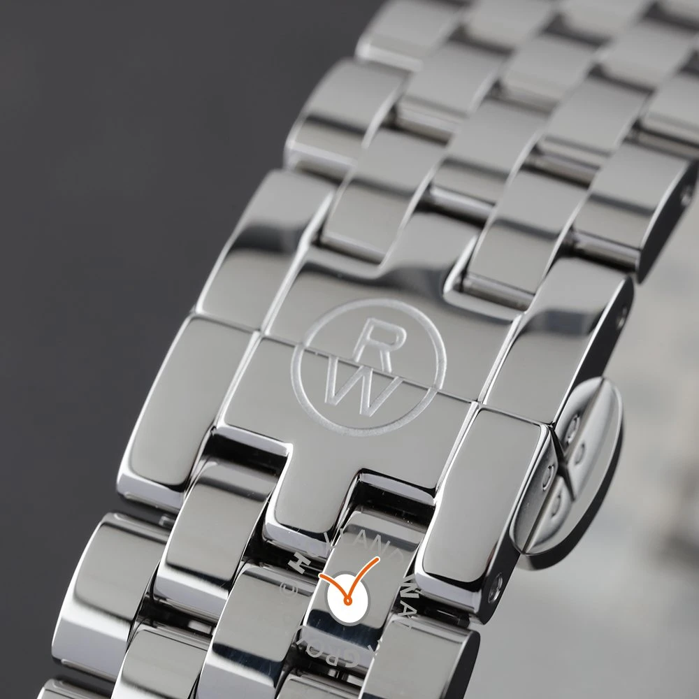 This Raymond Weil watch has a case made of stainless steel with a diameter of 29 mm and is fitted with a metal band. Inside the case lies a ETA movement and the watch features a Sapphire crystal.