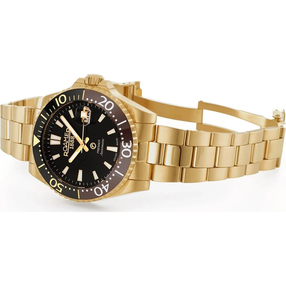 The watch is 20 ATM. This means the watch is suitable for diving. The watch comes with Roamer 2+5.