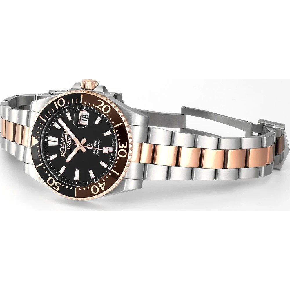 The watch is 20 ATM. This means the watch is suitable for diving. The watch comes with Roamer 2+5.
