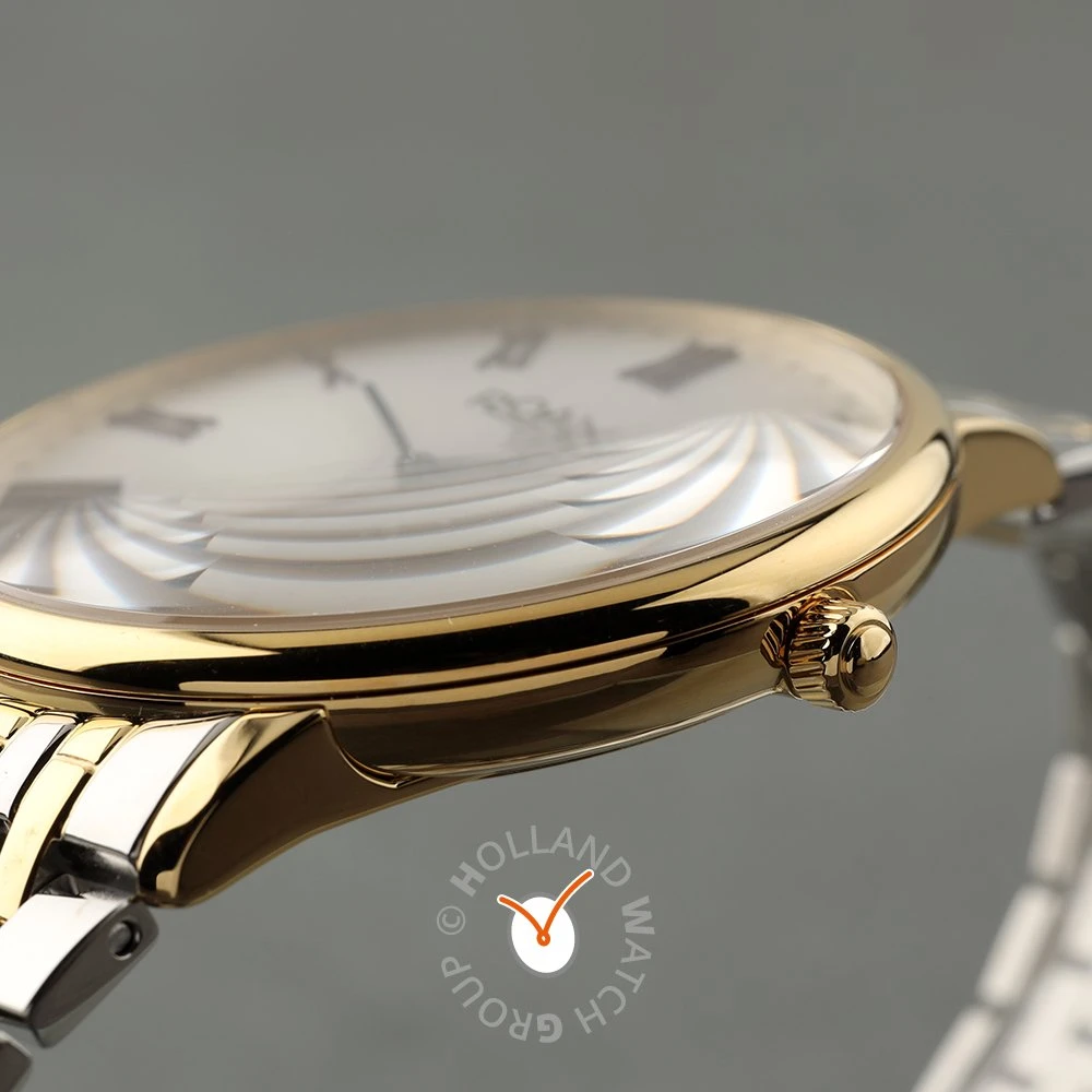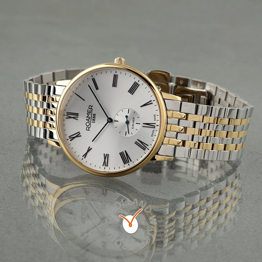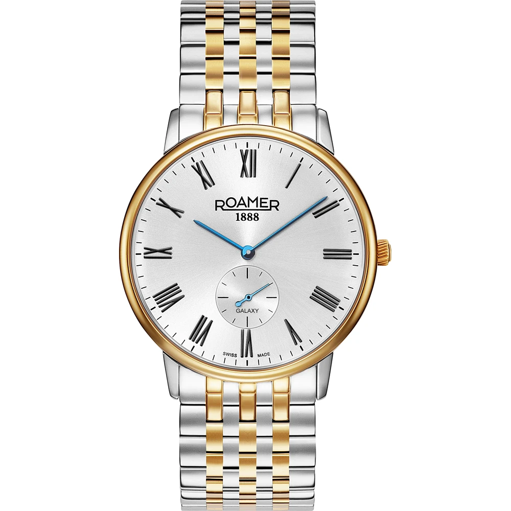 This Roamer watch has a case made of stainless steel with a diameter of 41 mm and is fitted with a metal band. Inside the case lies a Ronda movement and the watch features a Sapphire crystal.