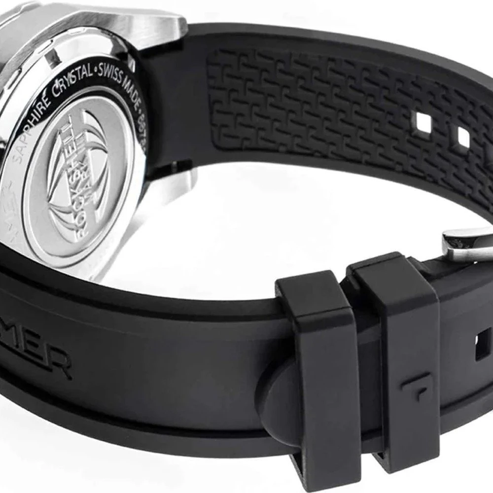 This Roamer watch has a case made of stainless steel with a diameter of 45 mm and is fitted with a rubber band. Inside the case lies a Ronda movement and the watch features a Sapphire crystal.