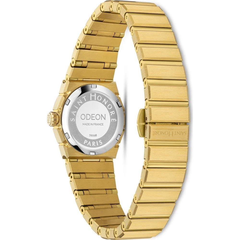 This Saint Honoré watch has a case made of stainless steel with a diameter of 26 mm and is fitted with a metal band. Inside the case lies a Ronda movement and the watch features a Sapphire crystal.