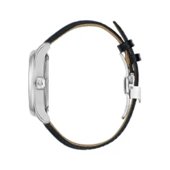 This Seiko watch has a case made of stainless steel with a diameter of 39.4 mm and is fitted with a leather band. Inside the case lies a Seiko movement and the watch features a Mineral crystal.