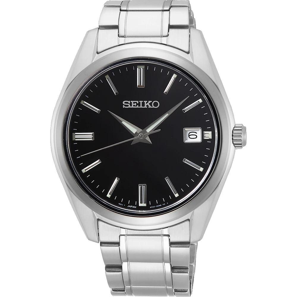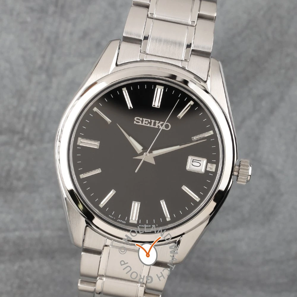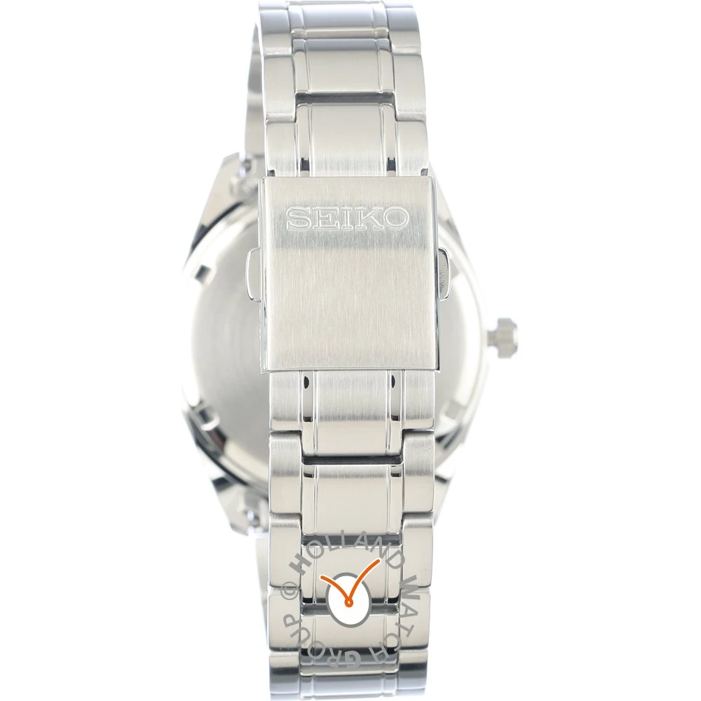This Seiko watch has a case made of stainless steel with a diameter of 40 mm and is fitted with a metal band. Inside the case lies a Seiko movement and the watch features a Sapphire crystal.