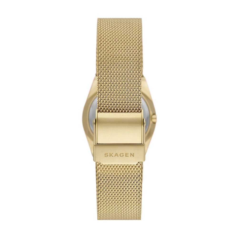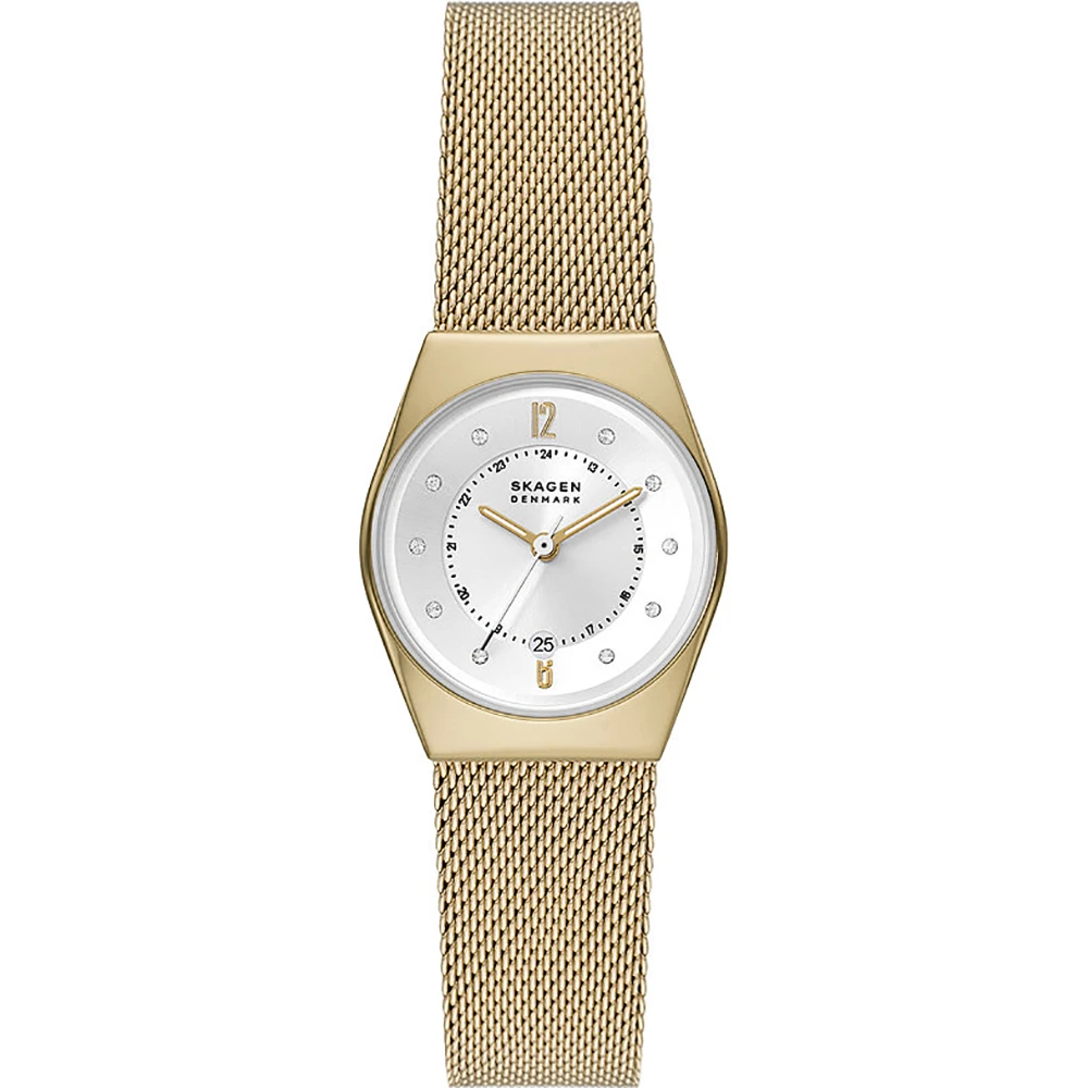 This Skagen watch has a case made of stainless steel with a diameter of 26 mm and is fitted with a metal band. Inside the case lies a Miyota movement and the watch features a K1 Mineral crystal.