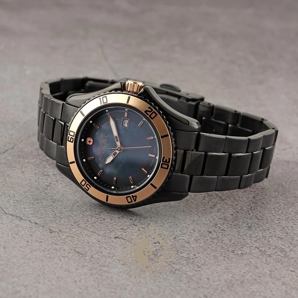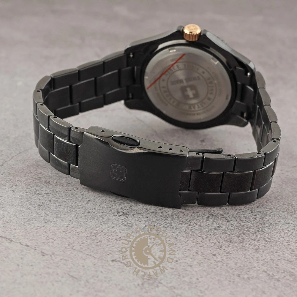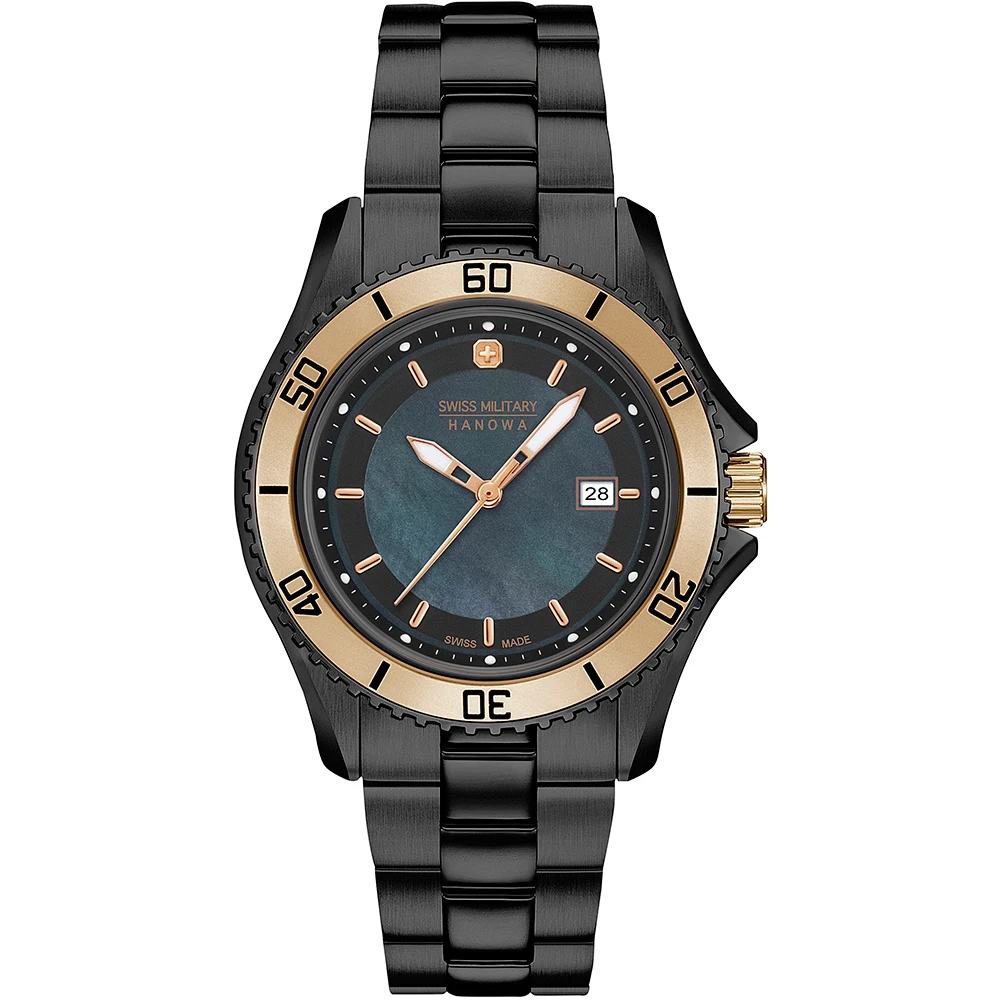 This Swiss Military Hanowa watch has a case made of stainless steel with a diameter of 36 mm and is fitted with a metal band. Inside the case lies a Ronda movement and the watch features a Sapphire crystal.