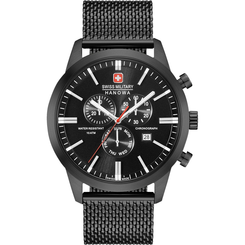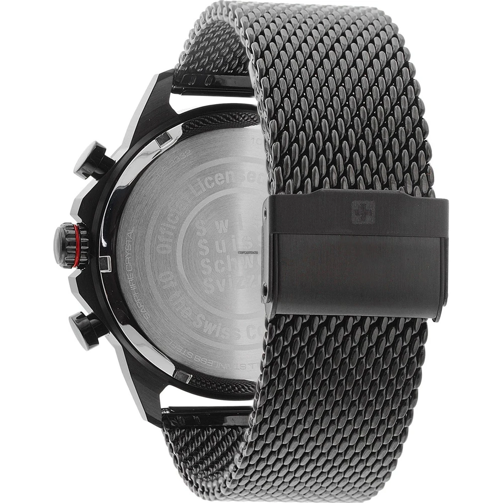 This Swiss Military Hanowa watch has a case made of stainless steel with a diameter of 45 mm and is fitted with a metal band. Inside the case lies a Ronda movement and the watch features a Sapphire crystal.