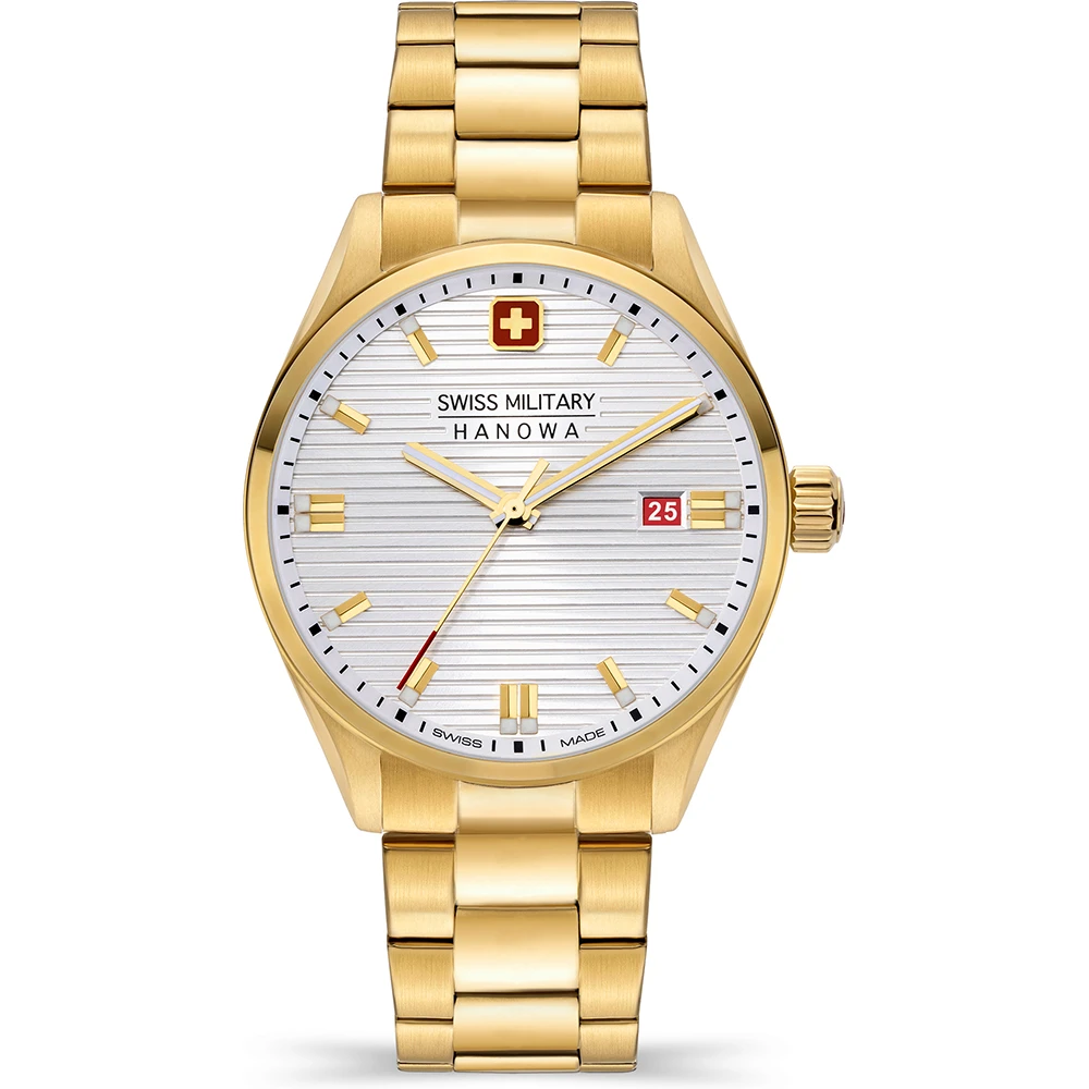 This Swiss Military Hanowa watch has a case made of stainless steel with a diameter of 40 mm and is fitted with a metal band. Inside the case lies a Ronda movement and the watch features a Sapphire crystal.