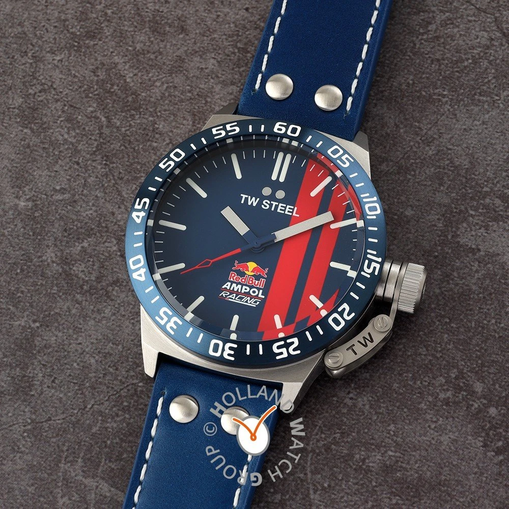 This TW Steel watch has a case made of stainless steel with a diameter of 45 mm and is fitted with a leather band. Inside the case lies a Miyota movement and the watch features a Hardened mineral crystal.