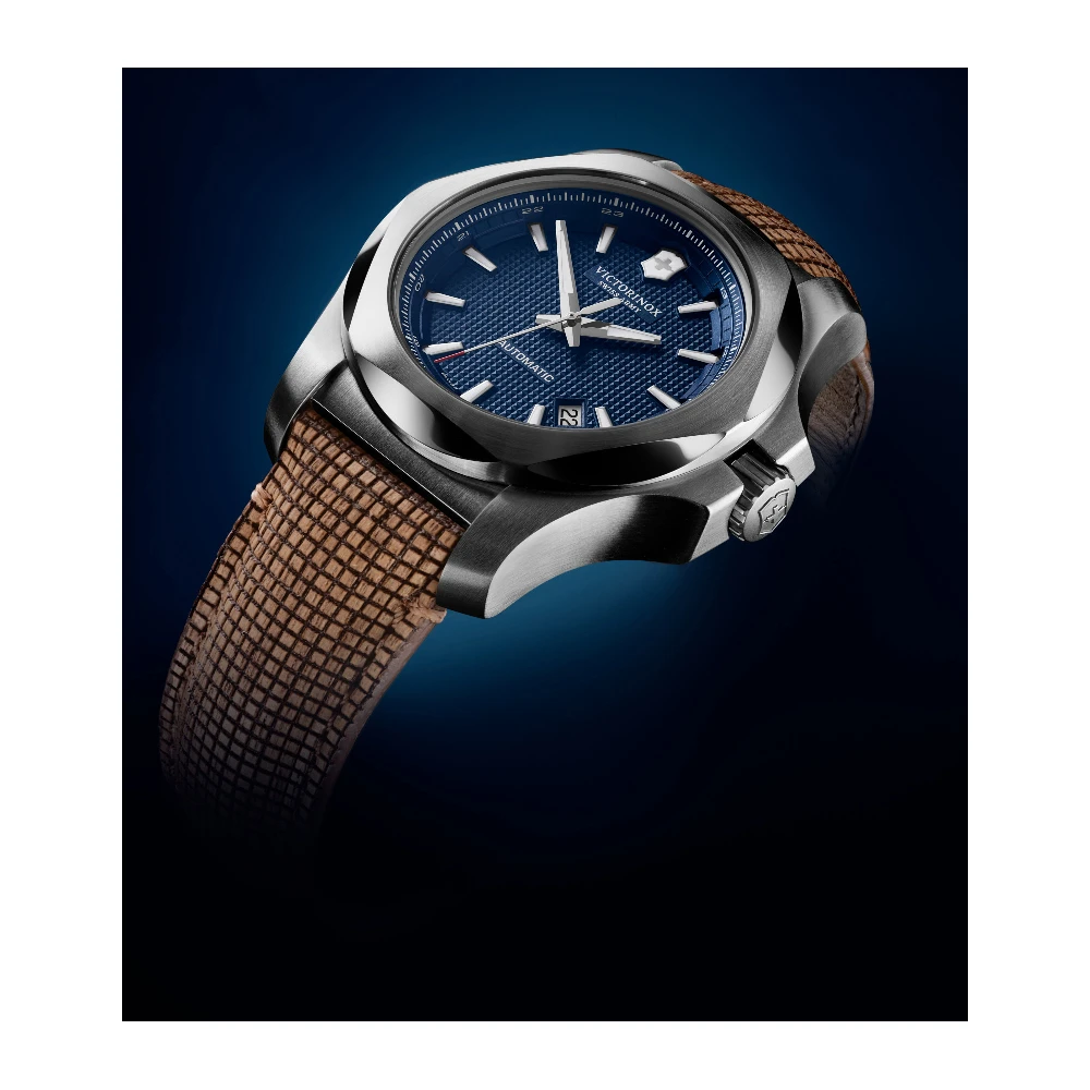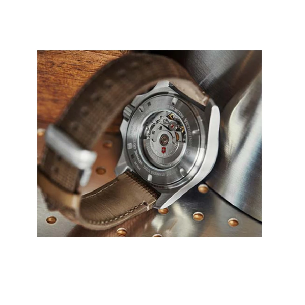 This Victorinox Swiss Army watch has a stainless steel case 43 mm in diameter and is fitted with a wood strap. Inside the case lies a ETA movement and the watch features a Sapphire crystal.