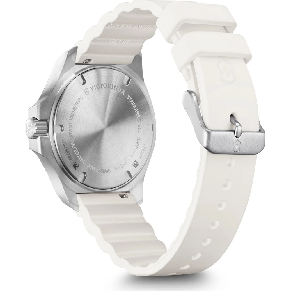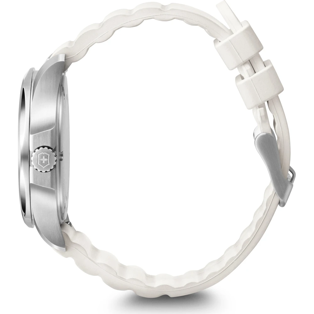 This Victorinox Swiss Army watch has a case made of stainless steel with a diameter of 37 mm and is fitted with a rubber band. Inside the case lies a Ronda movement and the watch features a Sapphire crystal.